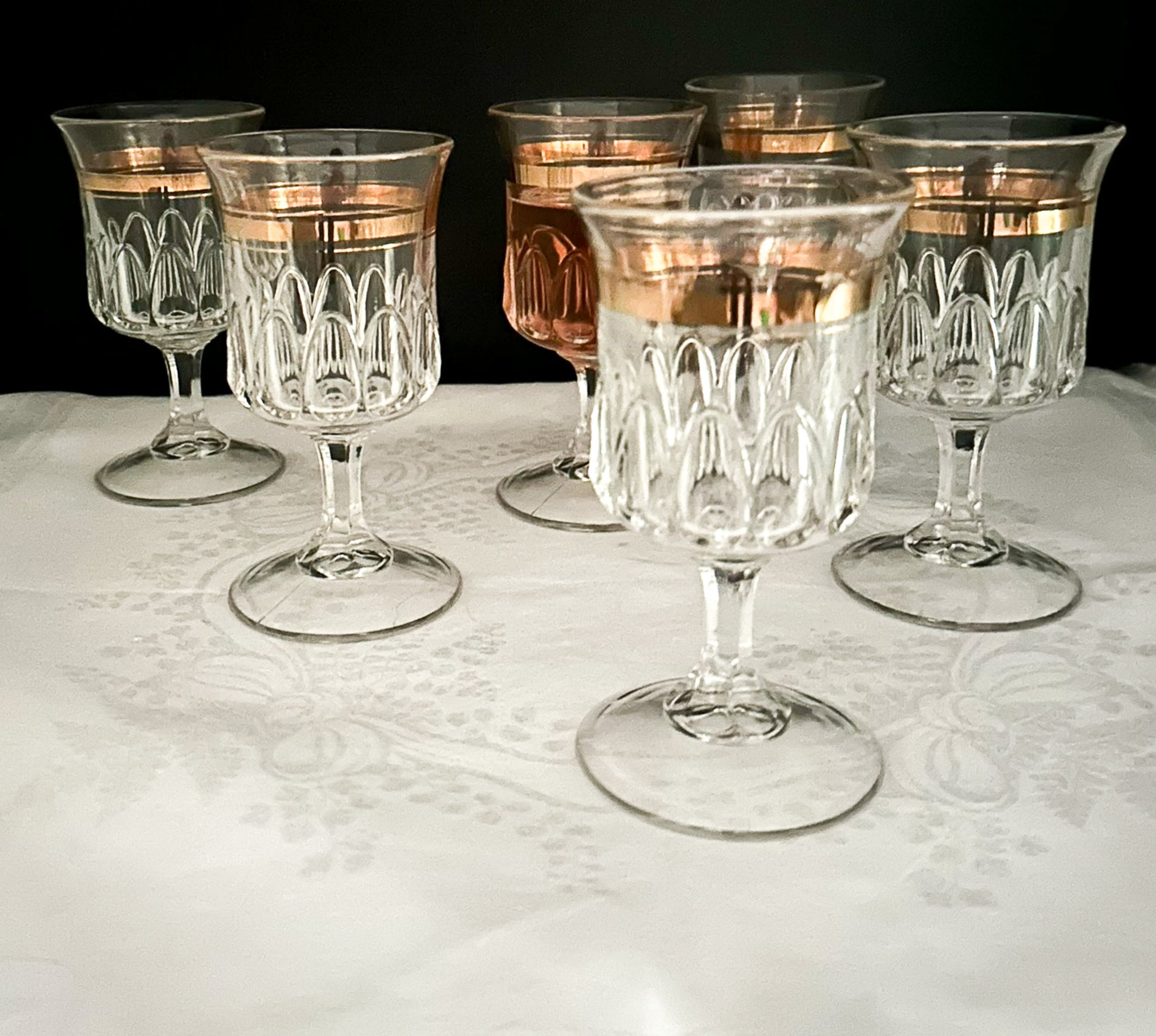 Condition: These are vintage glasses and have been used before but they are in very good condition. No significant signs of damage but a couple of the glasses show some minimal wear on gold band.